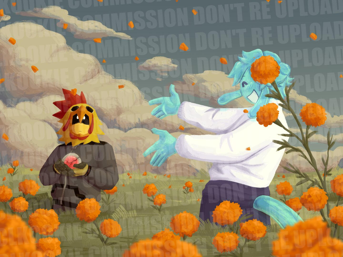 Only clients can re upload their respective commissions, if you want your commission to be private, ask me to remove it or before posting it to my social medias.